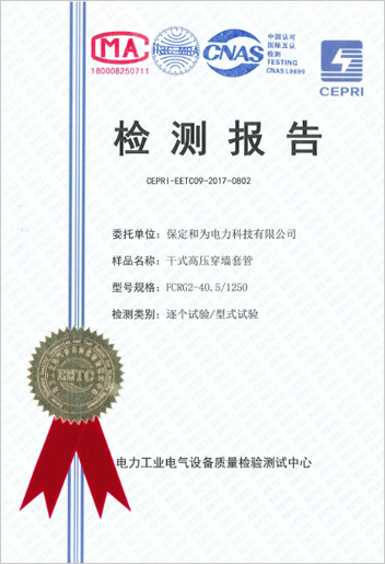 24kV高壓穿墻瓷套管型式試驗檢測報告126kV干式復合穿墻套管型式試驗報告